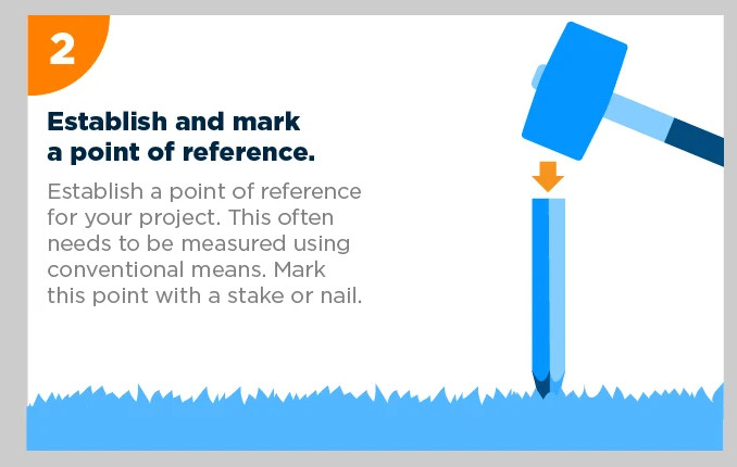 Tentukan titik referensi untuk proyek Anda. Titik ini biasanya sudah diukur menggunakan metode konvensional sebelumnya. Tandai titik ini dengan jelas menggunakan patok atau paku di tanah.