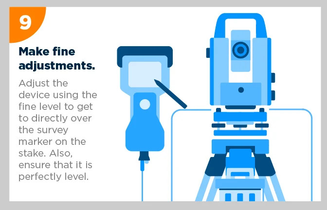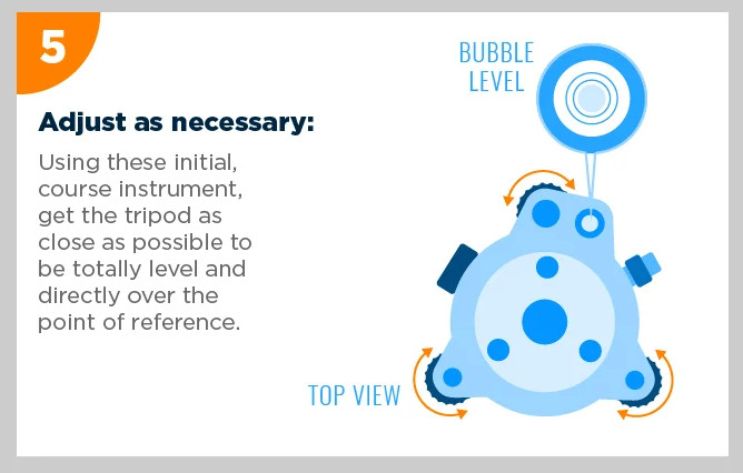 Gunakan sekrup pada kaki tripod atau tribrach untuk membuat alat sedatar mungkin (level). Pastikan posisi tribrach tetap berada di atas titik acuan.