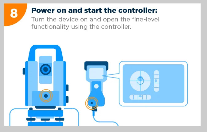 Hidupkan perangkat (Power On). Buka fungsi fine-level (nivo digital) pada layar kontroler.Lakukan Leveling Halus (Fine Adjustment)