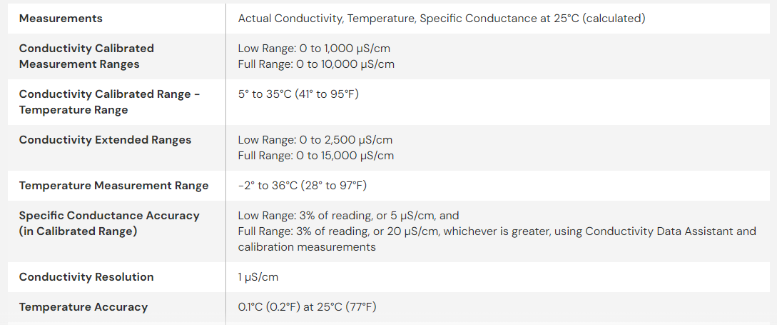 - HOBOware Pro software enables start/end-point calibration to compensate for any fouling and provides easy conversion to specific conductance and salinity