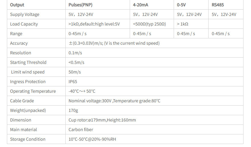 Sensor Kecepatan Angin RK100-02 Plastic Wind Speed Sensor Wind Anemometer menggunakan anemometer 3-cup sensitif yang dirancang untuk mengukur kecepatan angin dan laju angin. Cup sensor angin ini terbuat dari bahan serat karbon, dengan intensitas tinggi dan ambang awal yang rendah. Unit pemrosesan sinyal terpasang di cangkang casing. Sensor anemometer 3 cup Rika RK100-02 dapat digunakan secara luas dalam meteorologi, kelautan, pemantauan lingkungan, bandara, pelabuhan, laboratorium, industri, dan area pertanian. Jika Anda mencari sensor kecepatan angin profesional, dapat mempertimbangkan sensor angin anemometer cup Rika RK100-02.