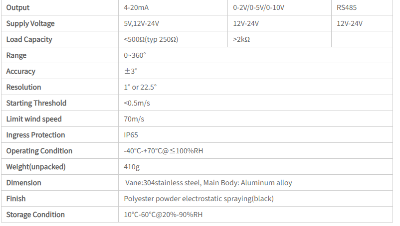 Sensor arah angin RK110-01 adalah indikator arah angin sensitif yang memberikan indikasi visual arah angin. Sirkuit digital yang mampu menahan RFI & EMI yang kuat dan kompensasi suhu otomatis sudah terpasang di dalamnya, konstruksi sensor mencerminkan persyaratan keandalan dan daya tahan. Hanya bahan tahan korosi dengan kualitas terbaik, seperti aluminium berkekuatan tinggi dan baja tahan karat yang digunakan. Sensor ini memiliki ketahanan yang baik terhadap pasir, debu, semprotan garam, dan tahan jamur, sensor ini ideal untuk studi penilaian sumber daya angin dan aplikasi serupa yang membutuhkan akurasi, keandalan, dan perawatan minimal.