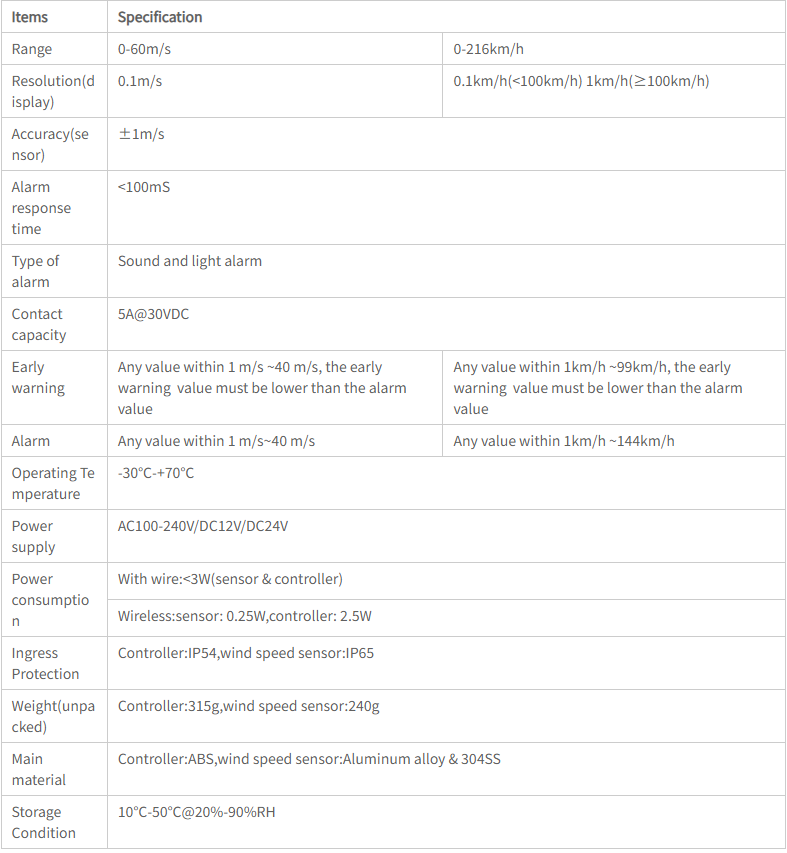 Pengontrol tampilan kecepatan angin RK150-01 Crane Wind Speed Sensor and Indicator memberikan indikasi visual kecepatan angin waktu nyata, dengan tampilan digital LED. Dalam cangkang perumahannya, dibangun di dalam mikroprosesor dengan fungsi kinerja tinggi, konsumsi daya rendah. Nilai peringatan dini kecepatan angin dan nilai alarm dapat diatur dengan tombol pada panel. Saat mengkhawatirkan, output sinyal dapat dikontrol oleh relai. RK150–01 adalah pendamping sensor kecepatan angin RK100–01.