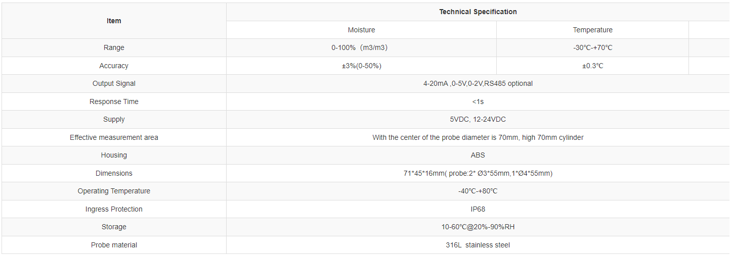 RK520-01 Soil Moisture & Temperature Sensor untuk mengintegrasikan pengukuran kelembaban dan suhu, probe baja tahan karat dimasukkan ke dalam permukaan tanah atau profil tanah untuk menguji kelembaban dan suhu tanah dengan cepat. Bagian pengukuran kelembaban dirancang berdasarkan prinsip FDR, dengan mengukur konstanta dielektrik tanah untuk mengukur volume kadar air tanah, bagian suhu mengadopsi elemen resistansi platinum presisi, kalibrasi penyimpangan bawaan produk dan sirkuit kompensasi suhu, dapat beradaptasi dengan sebagian besar aplikasi Probe dapat ditanamk