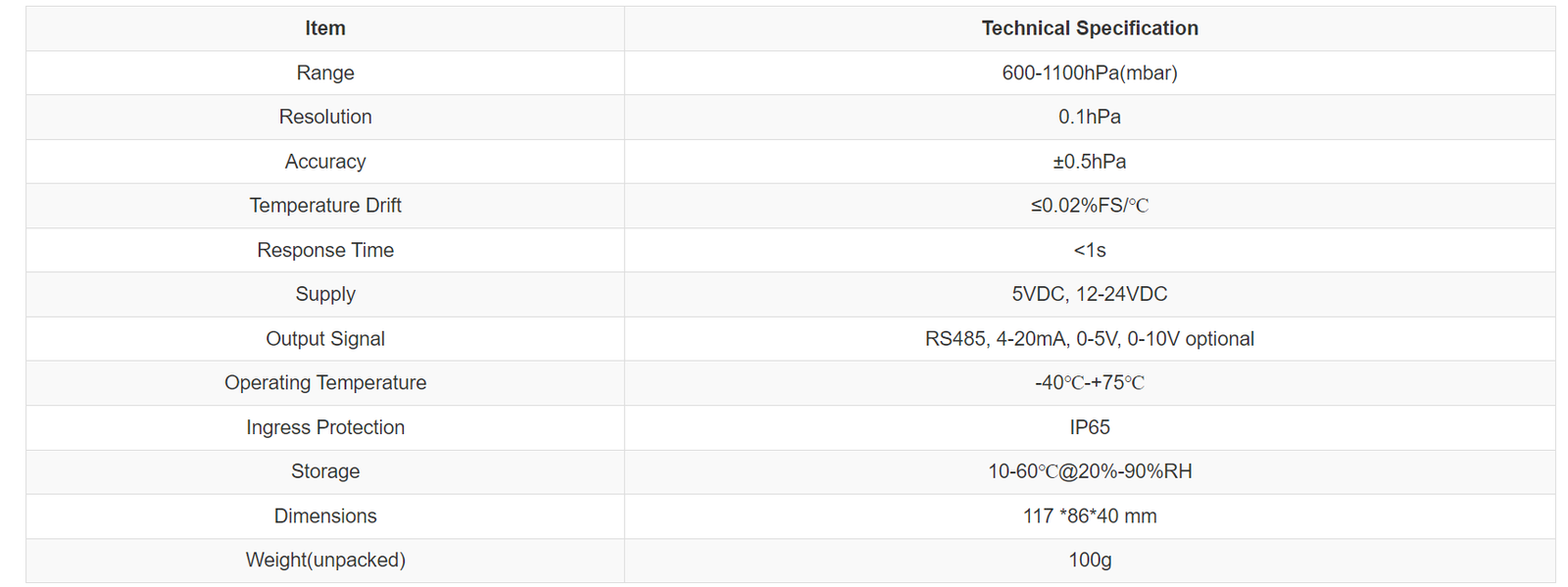 RK300-01 Wall-mounted Barometric Air Pressure Sensor