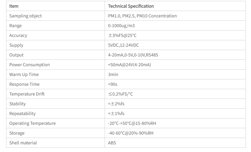 Sensor Debu RK300-02 menggunakan prinsip hamburan laser, mendeteksi adanya konsentrasi partikel debu di udara, minimum dapat mendeteksi partikel 1.0um, memiliki konsistensi dan stabilitas yang baik, sesuai dengan lingkungan penggunaan yang berbeda, ada tipe dalam ruangan dan tipe luar ruangan yang dapat dipilih.