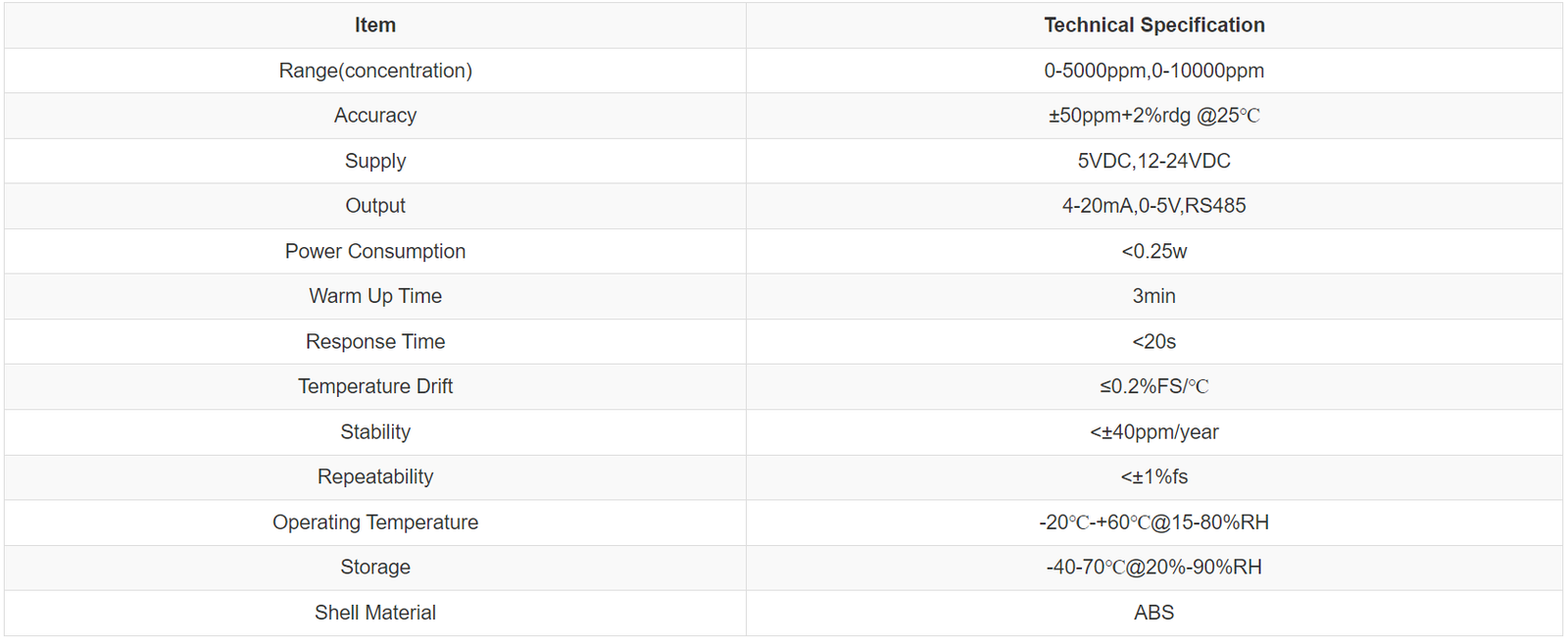 RK300-03A Indoor Carbon Dioxide Sensor CO2 Transmitter menggunakan prinsip NDIR untuk mendeteksi konsentrasi CO2 di udara, dirancang dengan teknologi pendeteksi gas penyerapan inframerah canggih, jalur optik yang presisi, dan sirkuit yang sangat baik. Sensor suhu bawaan mewujudkan kompensasi suhu untuk memastikan keakuratan pengukuran. Tanpa ketergantungan oksigen, dengan masa pakai yang lama.