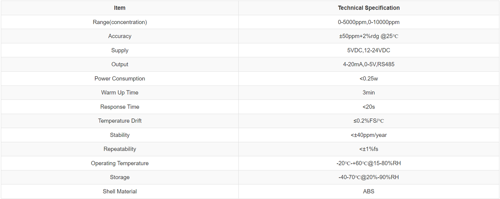 RK300-03B Outdoor Carbon Dioxide Sensor CO2 Sensor menggunakan prinsip NDIR untuk mendeteksi konsentrasi CO2 di udara, dirancang dengan teknologi pendeteksi gas penyerapan inframerah canggih, jalur optik yang presisi, dan sirkuit yang sangat baik. Sensor suhu bawaan mewujudkan kompensasi suhu untuk memastikan keakuratan pengukuran. Tanpa ketergantungan oksigen, dengan masa pakai yang lama.