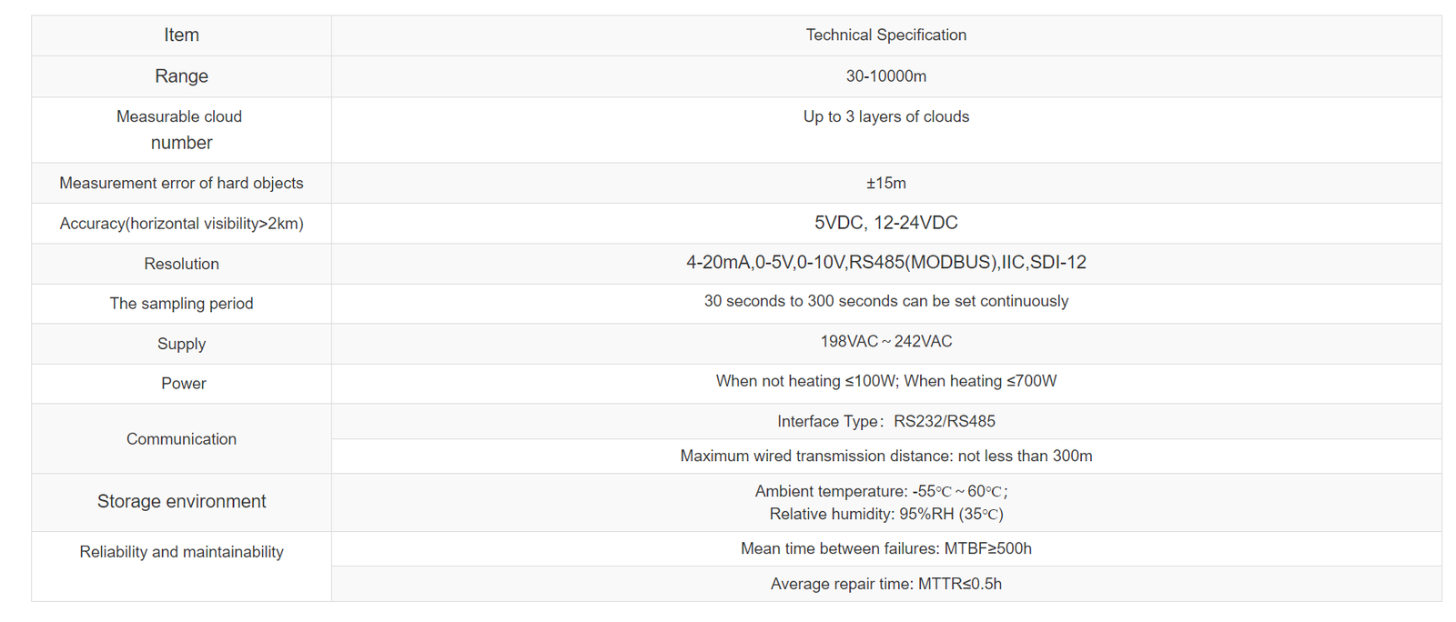 Ceilometer laser RK320-01 terutama digunakan untuk mengukur ketinggian dasar awan, penetrasi ketebalan lapisan awan, dan menghitung jumlah awan, dan menghasilkan visibilitas vertikal saat langit kabur. Ini terutama digunakan di bandara, kapal, dan departemen transportasi dan stasiun cuaca lainnya. Itu laser ceilometer memiliki keunggulan struktur sederhana, stabilitas kerja yang baik, keandalan tinggi, energi rendah konsumsi, serta penggunaan dan perawatan yang mudah.