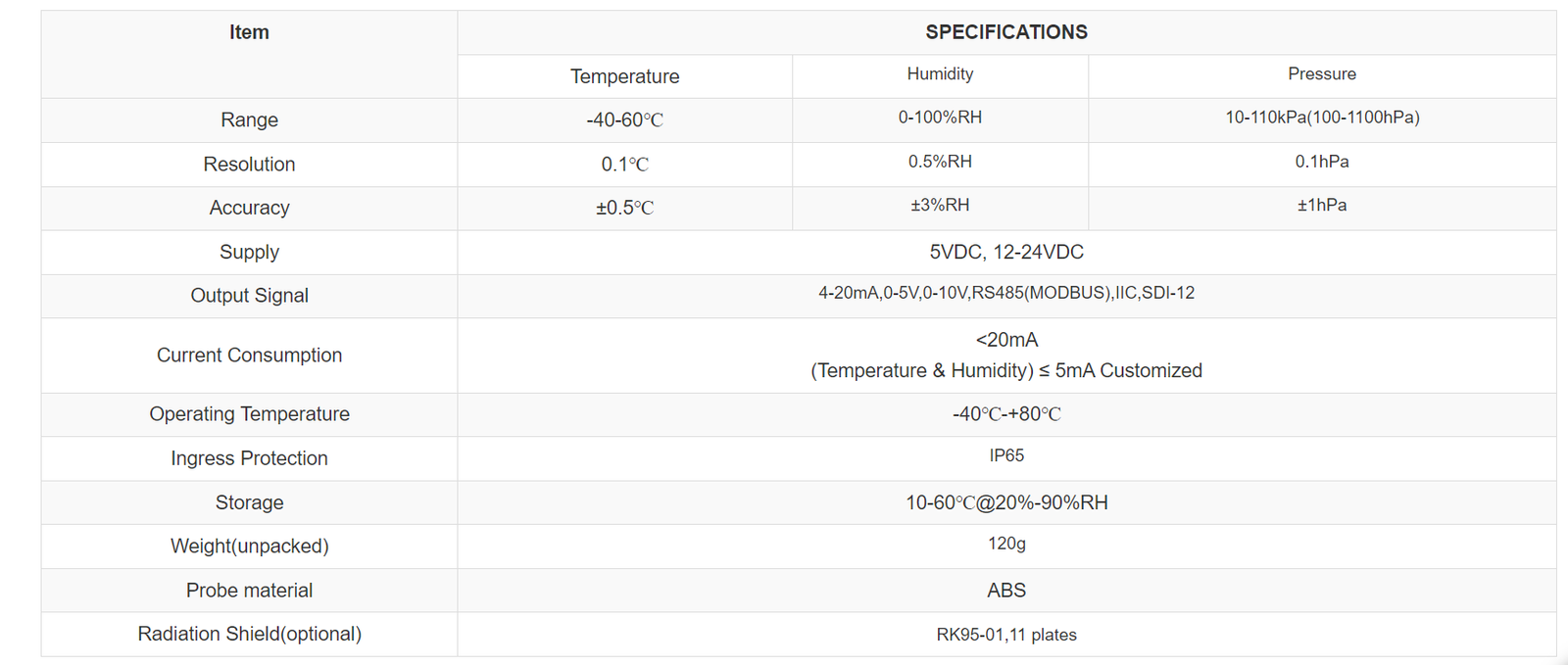 RK330-01 Atmospheric Temperature, Humidity & Pressure Sensor