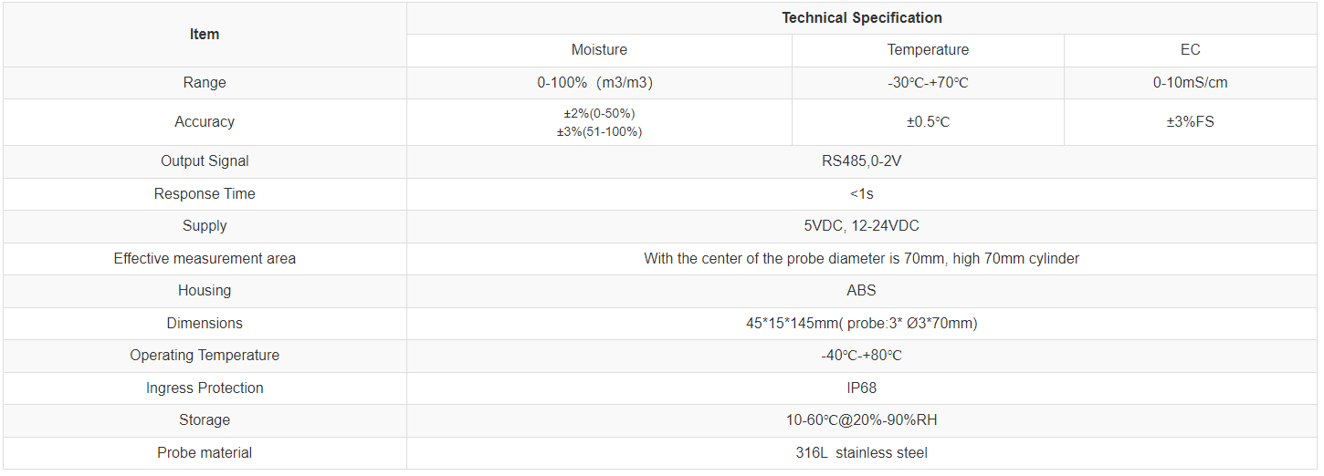 RK520-02 Soil Moisture Sensor, Temperature Probe& EC Sensor